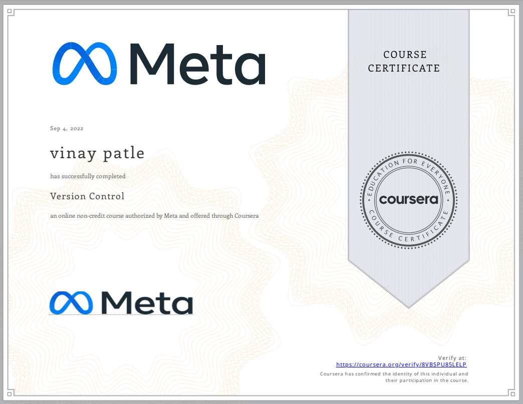 Certified in version control systems and collaborative development workflows using Git, including branching strategies and code review practices.